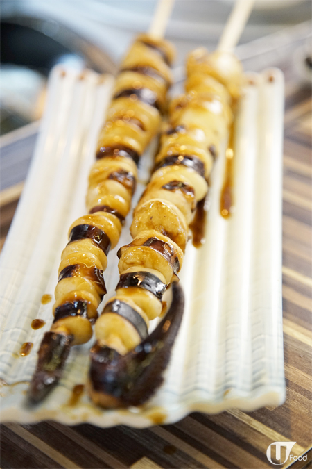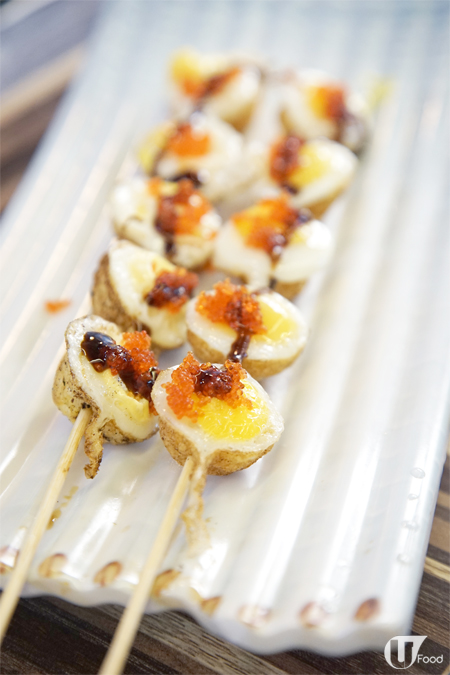 其實是鵪鶉蛋串燒,一串有 5 粒,加點鰻魚汁及蟹籽,更好味。