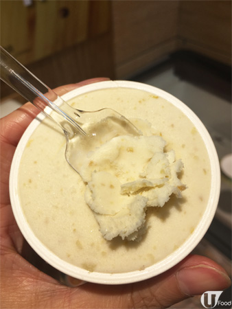 用來製雪糕的栗子用人手剝穀,所以製作需時,限量供應。甘甜栗子肉混合北海道 3.6 牛乳雪糕,奶味香濃,揭開見到好多栗子肉,栗子萬歲!