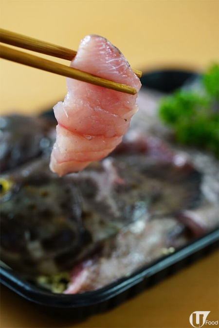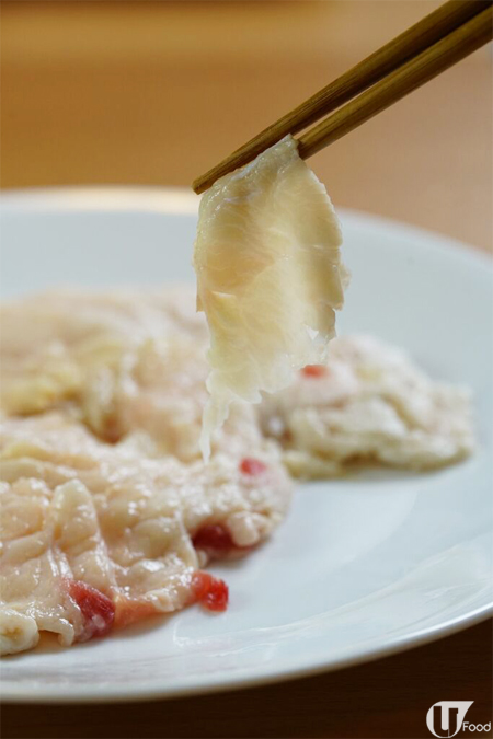 原條新鮮海斑切成片,每片都有 1cm 厚,魚肉好滑又有魚味,鮮甜。