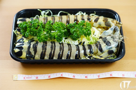 9 吋長巨型斑馬瀨尿蝦,產自東南亞一帶,店方建議煮 5 分鐘就食得,瀨尿蝦肉質爽彈,又甜又啖啖肉,正!