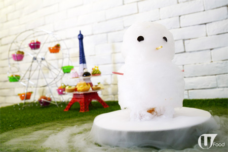 呢個雪人就係 cafe 最新力作;以棉花糖、朱古力及粉紅色百力滋製成,材料非常簡單,但造型就勁得意!重點是雪人底部放咗乾冰,加水後馬上冒煙,畫面既夢幻亦可愛,真係睇見都忍唔住嘩嘩聲。