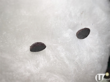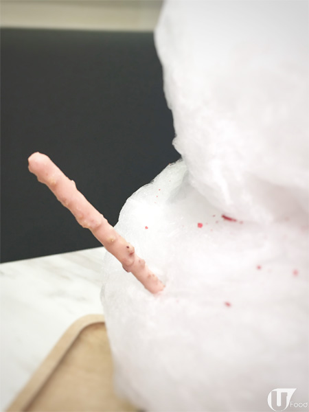 用白色棉花糖做成的雪人,以朱古力粒做眼,士多啤梨味百力滋是雪人手仔,仲有兩粒兔仔鈕扣,造型好可愛。