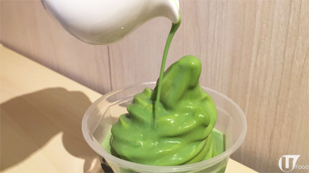 將溫熱嘅抹茶 latte 倒入冰凍嘅宇治抹茶軟雪糕同吃,味道即時 double up,抹茶控必 like!