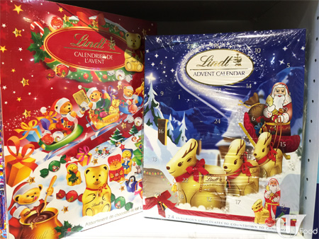 (左) Lindt 泰迪熊聖誕倒數月曆連什錦牛奶朱古力 $178/172g、(右) Lindt 朱古力聖誕倒數月曆 $85/160g (a)
