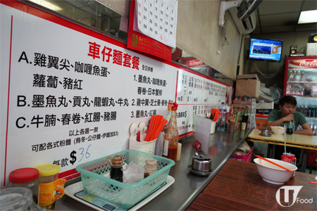 除咗小食,中午到來可以食碗車仔麵,我嘅心水係輝記。入到去,開放式廚房,配料擺晒喺你面前,揀啱心水才落單都唔遲。如果有選擇困難症,牆上嘅 menu 都有幾款配搭可作參考。車仔麵唔算貴,$36 有 4 餸兼送埋汽水,好多學生哥幫襯㗎。