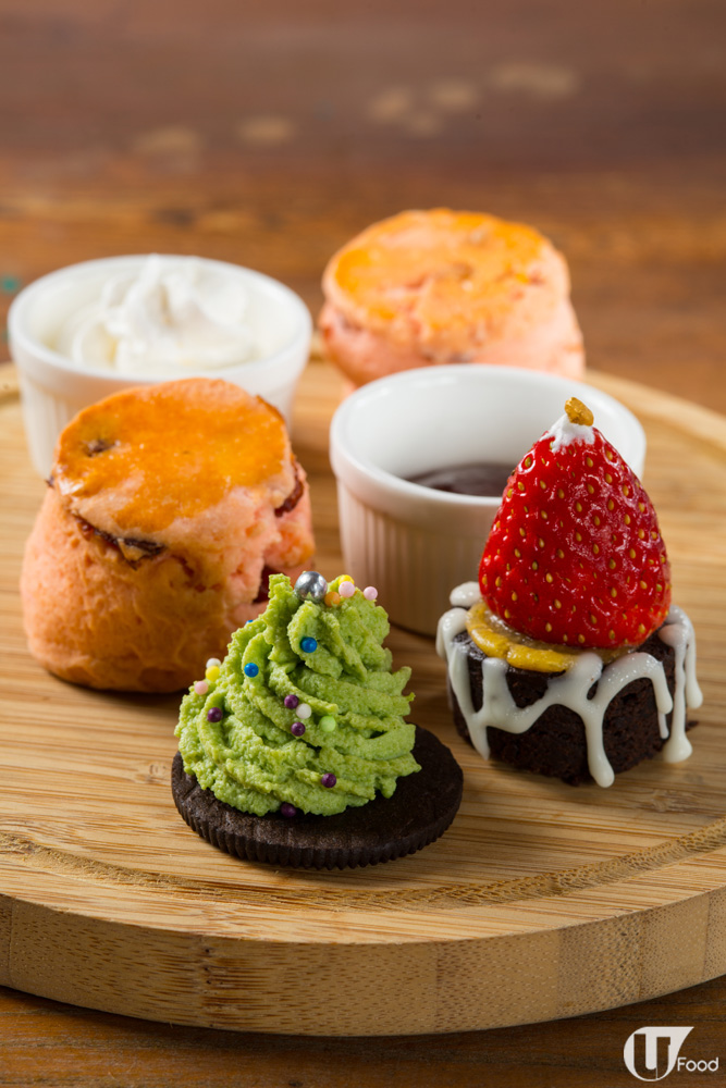 除咗配鮮忌廉及果醬的紅莓鬆餅外,仲有又紅又綠的草莓朱古力蛋糕和綠茶慕斯奧利奧餅,特別為聖誕主題而設,充滿聖誕氣氛,賣相Cute到令人唔捨得食呀!