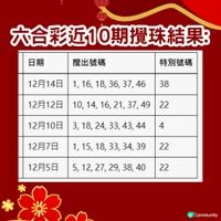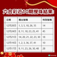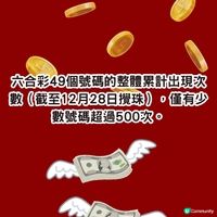 香港六合彩頭獎基金再度飆升至八千萬港元,將於本周四(12月11日)晚上攪珠。緣於上期(12月6日)頭獎無人獨中,累積多寶超過六千一百萬元全數撥入今期獎金,若以十元一注獨中,頭獎預計可達八千萬元,吸引力極大。 根據香港賽馬會自2002年7月4日起至2025年12月6日的開獎紀錄,由資深六合彩研究Facebook群組「齊齊研究六合彩!」創辦人強哥綜合分析,整理出歷年來出現頻率最高與最低的號碼,供大家參考:即刻去圖睇史上出現次數最多的熱門號碼! 今期八千萬巨獎即將開出,大家不妨參考上述大數據及策略,祝各位好運中獎! 以上號碼根據馬會過往數據,以供參考,並不代表個人立場。切勿沉迷於賭博。 來源:香港賽馬會,Facebook群組「齊齊研究六合彩!」 #攻略