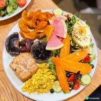 有一排冇食素食,喺香港嘅素食餐廳嚟講,素年算得上數一數二,今次約咗朋友走咗去素年嘅餐廳度食飯,順手吹下水 素年經典不可能芝士漢堡 $138 芝士漢堡用咗不可能肉、洋蔥、生菜、純素芝士,配菜就有番薯條,不過番薯條可以轉沙律,而飲品就係京都宇治玄米茶。素年嘅素芝士漢堡令人驚奇,質感整到好似真正嘅漢堡扒咁,而且漢堡入面嘅芝士同埋蛋黃醬都不含蛋奶,蛋黃醬使用天然材料製作比如初榨橄欖油、蘋果醋以及豆奶等,口感豐富,而配菜沙律入口清爽,份量使人滿足 非常十九純素藍莓鬆餅全日早餐 $138 全日早餐配料豐盛,包括有沙律菜、車厘茄、藍莓、牛油果、甘筍、大啡菇、蘿蔔、紫薯、青瓜、生菜、火箭菜等等,當中有兩樣配料幾特別,早餐入面嘅炒蛋原來係黃薑豆腐製成,而旋風薯片食落去就有啲似扭扭薯條,當然唔少得藍莓鬆餅,食落鬆化美味 番薯條配自家製黑松露蛋黃醬 $68 一向都鍾意食蕃薯,小食就叫咗番薯條,番薯條份量都唔少,表面灑咗啲偽芝士粉,味道淡淡地,自家製黑松露蛋黃醬畀得好足,有明顯嘅黑松露香,食落好惹味 純素黑芝麻芝士蛋糕 $58 食完飯點少得甜品呢!叫咗個黑芝麻芝士蛋糕,表面係黑芝麻碎碎,中間同樣係用黑芝麻製成,底下就係餅底,成個蛋糕有濃厚嘅黑芝麻香味,食落唔會好甜,感覺輕盈 #Brunch#AllDayBreakfast#打卡美食#全日早餐#CAFE#UCreator 🏠素年(深水埗)