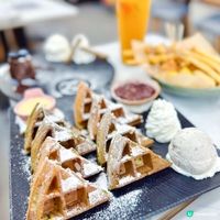 想試✨嘆甜品✨好耐好耐啦~同朋友點到成枱嘢食,不過原來價錢都唔貴,份量亦唔少,性價比好高。 🧇宇治抹茶拼烏龍茶麻糬窩夫 (屯門店限定) $70 窩夫外層香脆,內層有陣陣茶香,同埋帶些煙韌嘅麻糬,口感對比吸引。🍵抹茶帶甘香,烏龍茶味道就唔太突出,整體甜而不膩。加上紅豆、雪糕、忌廉,十分足料,性價比幾高!😋 2pm-7pm會有下午茶餐,甜品加飲品。 🍫心太軟配雪糕 $48 ☕️拿鐵咖啡 +$5 心太軟非常出色,外脆內軟,溫度控制得剛剛好,見到內餡有滿滿朱古力流心🤎,真係十分療癒😍朱古力濃郁香甜,雪糕綿厚,幾重牛奶味,整體整得好到位,令人滿足👍🏻 本身係甜品店點咖啡☕️就無咩期望,起碼感受到店員有努力🙈建議點返茶或者其他特飲。 🍢小食拼盤 (炸燒賣、鹽酥雞粒、雞軟骨、薯條) $56 每一款小食都炸得香酥,好好食🤭!鹽酥雞粒外脆內嫩,雞軟骨鹹香可口,炸燒賣彈牙帶些咬口。份量唔少,好啱同朋友分享。 🍠脆Q地瓜球 $28 外脆內Q軟,地瓜內餡甜甜地,有點煙韌咬口,相對味道較清淡。 🍹嘆•綜合水果茶 $36 充滿各種水果香氣,茶底清香,帶陣陣水果酸甜,配甜品幾解膩清新。 📍嘆甜品 (屯門) 地址:屯門青菱徑3號東威閣地下G02號舖 #嘆甜品#甜品#foodie#高質#屯門#屯門美食#香港美食#香港甜品店#香港甜品#麻糬#麻糬控#香港餐廳#相機食先#食物拍攝#吃貨#美食日記#食評#美食推介#hkfoodie#hkblogger#hklifestyle#hkfoodlover#hkfoodblogger#hkdessert#女生好物體驗包#ok即刻有#chill賞遊世界#透亮抗敏#秋妝上陣#ucreatorhk#窩夫#Dessert