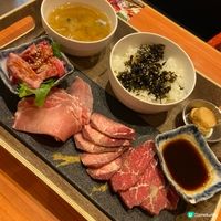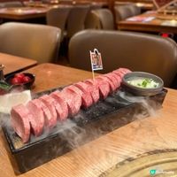 餐廳主打新派日式燒肉,提供多款靚肉部位,提供四款燒肉套餐,最平$199就有交易。長龍牛舌九款套餐($399)性價比最高,套餐包括五款肉類及四款配菜,其中長龍牛舌最為吸睛,拉起後足足有半個人咁長!而且店員會幫忙燒牛舌,牛舌兩面燒至半熟口感爽彈脆身,再加上檸檬汁和夾入滿滿葱花,超級滿足!