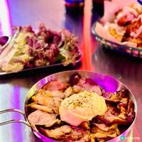 [ 啤啤Bear韓國包車 ] 尖沙咀諾士佛臺 呢間新派韓式🇰🇷餐廳以韓式機舖為主題,更加入霓虹燈光元素,由環境到食物都打卡一流👍。 最近仲做緊限時⚠️半價優惠⚠️,「鐵板韓式烤鰻魚配紫菜」只係$98😍! 大發!啤啤鐵板系列 ✿ 大發!芝士鐵板黑松露炸醬拉麵 $98 🧀🍜 另一款現場鐵板明火爆炒🔥產品,芝士炸醬拉麵本身已經好邪惡,加埋大量黑松露醬,未食已經聞到都好香😍。 ✿ 大發!芝士鐵板辣炒小章魚 $148🧀🌶🐙 爽脆小章魚遇上濃濃芝士、韓式辣醬,再現場用鐵板明火爆炒🔥超惹味。 BBB 韓式無骨炸雞 ✿ BUTTER X GARLIC 韓式無骨炸雞 $158 🧈🧄🐔 無骨炸雞用岩鹽香蒜牛油醬醃味,外脆內多肉汁,啖啖肉好滋味。炸雞份量超多,夠3-4人分享食用。 下酒必備! ✿ 蟹籽海鮮煎蛋卷 $138 🥚 即點即製韓式煎蛋卷,全條鋪滿粒粒脆卜卜嘅蟹籽😯,切開煎蛋卷爆哂餡,海鮮有八爪魚、蜆肉等。 總結🫦 餐廳由門口到用餐區佈置都打卡一流,加埋霓虹燈光元素超有氣氛😁。食物份量普遍都遍多,叫幾款share食啱哂👍。 ✿✿✿✿✿✿✿✿✿✿✿✿✿✿✿✿✿✿✿✿✿✿✿✿✿✿ 啤啤Bear韓國包車 地址:尖沙咀諾士佛臺1號8樓 電話:5532 0461 ✿✿✿✿✿✿✿✿✿✿✿✿✿✿✿✿✿✿✿✿✿✿✿✿✿✿ #尖沙咀好去處#尖沙咀食乜好#尖沙咀美食#尖沙咀必食#啤啤bear韓國包車#韓國餐廳#韓國餐廳推薦#打卡餐廳#香港打卡餐廳#y2k#慶生餐廳#韓國包車#啤啤韓國包車#韓式料理#韓國美食#UCreator#Foodie#goodhairday#靚住過聖誕#精緻茶聚#ucreatorhk