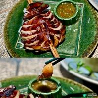 前菜方面,推介炭燒泰式串燒($68)及炭燒泰式豬頸肉($78),串燒先以泰式調味醃製半日,即叫即燒,配上自家製沙嗲汁,風味十足;豬頸肉先把魚露、椰糖、和蒜頭等製成醃料,醃製豬頸肉約12小時後,再將其焗至金黃脆口,配上自家製泰式酸辣蘸汁,非常惹味。