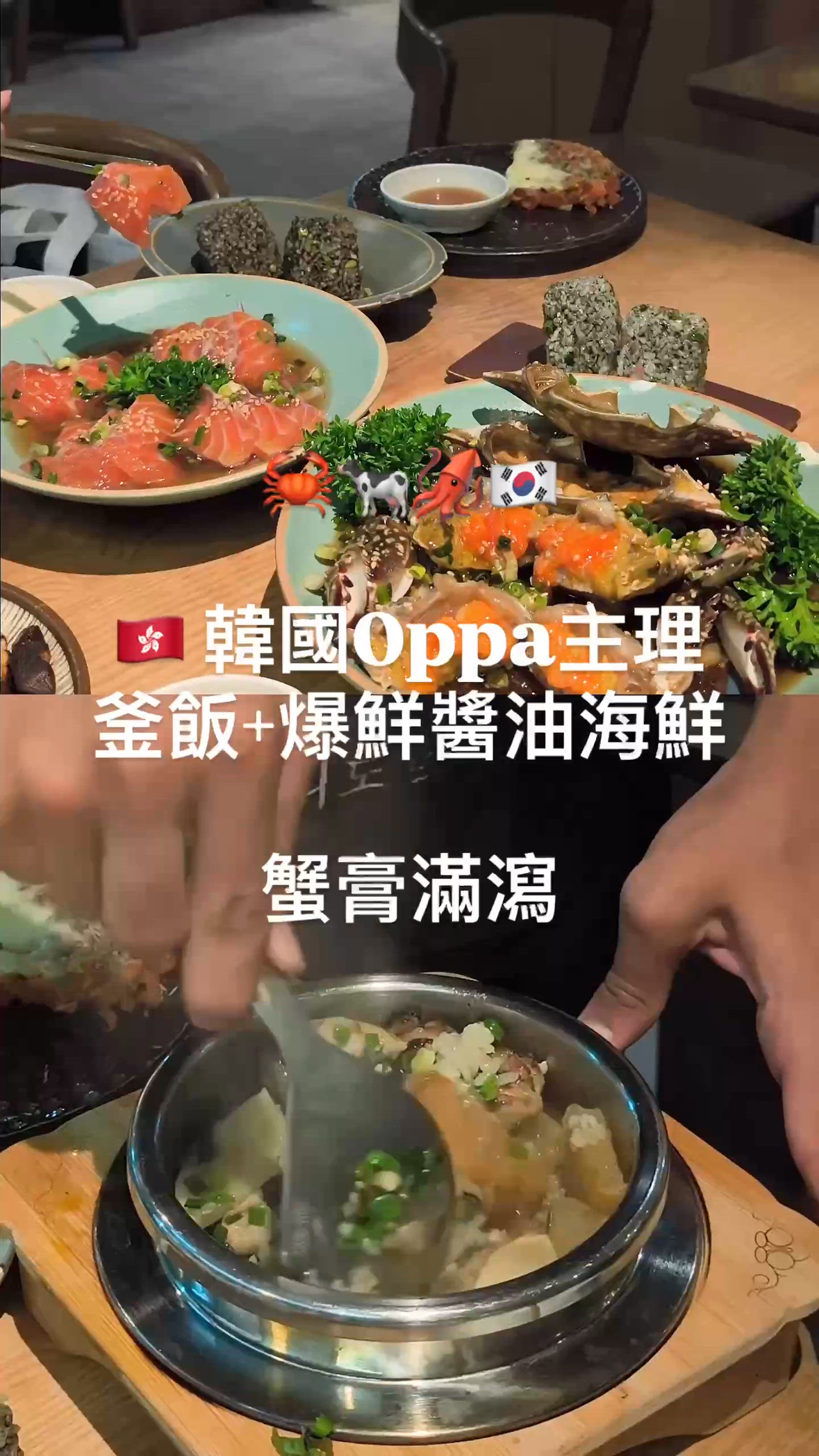 ANTIDOTE推出全新菜單,包括港人至愛生醃醬油海鮮拼盤($998),一份有齊醬油蟹、鮑魚、三文魚、蝦、海螺、三文魚及八爪魚,使用自家秘製醬料醃製,爆膏醬油蟹拌韓式飯糰一起吃,超滿足!
