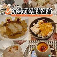 【上環明軒小館沉浸式的蟹粉盛宴】🦀 身為一個重度大閘蟹痴迷者🦀,聽說上環新開了一家專注蟹粉料理的上海菜餐廳《明軒小館》,我們又怎能錯過呢?下班後立刻飛奔過去,準備來一場沉浸式的蟹粉饗宴!✨ 首先登場的是兩道精緻的前菜: 「清酒墨魚仔」🍶 墨魚仔鮮嫩彈牙,帶著淡淡的清酒香氣,清爽開胃,完美打開味蕾。👅 「水晶蟹肉凍」❄️ 晶瑩剔透的肉凍包裹著絲絲蟹肉,蟹肉鮮甜。🦀 接下來要進入「蟹粉模式」了!😉 「蟹粉小籠包」🥟 薄薄的皮包裡,包著滿滿的蟹粉湯汁,蟹香濃郁,讓人幸福感爆棚!💥 「至尊蟹粉正宗蝦仁鍋巴」🍤 這道絕對是視覺與味覺的雙重享受!熱辣辣的蟹粉淋在香脆的鍋巴上,發出「滋滋」的誘人聲響,蟹粉的濃郁與鍋巴的酥脆完美結合。🔥 「禿黃油糯米燒賣」🥢 禿黃油的香氣撲鼻而來,搭配軟糯的糯米,每一口都是極致享受!😋 「蟹粉蝦仁雲吞」🍜 雲吞皮滑餡多,蟹粉與蝦仁的鮮味相互交融,湯頭清澈鮮甜,喝下去整個人都暖呼呼的。☺️ 最後以一道中西合璧的甜品結束這場盛宴。「老上海法式焦糖燉蛋」🍮 燉蛋口感細膩順滑,焦糖的甜度恰到好處,為這頓蟹粉大餐畫上完美的句號。🎉 #撃退肌膚衰老問題