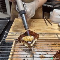 黑芝麻湯丸泡芙用上日本九鬼黑芝麻醬、吉士和香緹忌廉,黑芝麻味三重濃醇,加上煙韌麻糬,配竹炭菠蘿皮泡芙。