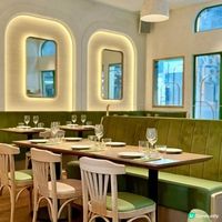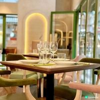 餐廳佔地1300平方呎,可容納50位賓客;入口外牆設計鋪滿亮麗的橄欖綠色瓷磚,店內則以精美的大理石料理桌為中心,並利用柔和橄欖綠色及粉色系貫穿兩大用餐區域。天花的吊燈裝飾令牆身上呈現出溫柔細膩的光影視覺效果,整體感覺悠閒舒適。