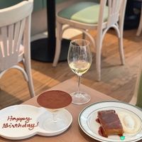 JUNO位於上環永樂街,離遠已經被餐廳淺綠色的外牆吸引住了💚 店內的裝潢高級優雅,很適合前來慶祝特別日子呢~🥰 我們星期天下午來到,點了Tasting Menu,包括5款前菜、自選1款主菜及1款甜點✨ 🤍前菜 伊比利亞火腿48個月:火腿味道濃郁,搭配外脆內軟的烘烤迷迭香意大利麵包,與火腿的油脂互相交融,增添了口感層次🤩 布拉塔流心水牛芝士:Burrata奶香味濃郁,質地柔滑,搭配小蕃茄增添清新感☺️ 吞拿魚蛋黃醬泡沫:賣相精緻,意式吞拿魚醬柔滑creamy,加上三文魚子作點綴✨ 吞拿魚韃靼:吞拿魚蓉口感細膩,加上清新酸甜的檸檬西柚味醂汁,提升了吞拿魚的鮮美🥰 西班牙甜青椒:外層微微焦香,味道清甜,入口回甘😌 🤍主菜 海鮮'砂鍋'西班牙短麵:紅蝦很大隻,味道鮮美😍 湯底濃郁,麵條煙靭有彈性,吸收了湯汁的精華,好好吃!推薦!👍🏻 🤍甜點 Tiramisu:訂位時註明是慶祝生日,餐廳在甜品上寫上Happy Birthday,非常貼心🫶🏻 Tiramisu入口輕盈,咖啡及酒香味亦同樣香濃🤤 Tarte Tatin塔丁蘋果塔:蘋果塔搭配焦糖奶油及雲呢拿雪糕,整體味道酸酸甜甜,冷熱交融的口感很滋味😋 📍JUNO - 上環永樂街88號地舖 #旅行手信推介#我想食buffet#UCreator#打卡美食#打卡#隱世打卡點#上環cafe#junohk#上環美食#上環餐廳#上環打卡#sheungwanrestaurant #junohongkong#香港美食#香港cafe#香港打卡餐廳#hkfoodie#香港慶生餐廳#香港慶祝#hkfoodblogger