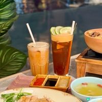 餐廳提供茶茗—荔枝古樹紅茶(茶芥每位$8),大家亦可以加點飲品,小編就試了菠蘿熱情果沙冰($68)和班蘭紅豆冰($68),皆別具東南亞特色。