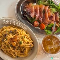 2026第一post🫶🏻 Bookmarked咗一段時間嘅十常八九 搬咗嚟旺角之後終於試到~ 🔅烏魚子鯷魚意大利麵 $148 味道有啲似明太子意粉 淡淡嘅海鮮味mix埋cream嘅奶香味 🔅煙三文魚刁草酸乳酪·薯仔芝士酸種麵包 $98 yogurt味同煙三文魚幾夾 味道冇cream cheese咁膩 可惜蓋過咗sourdough嘅味🥺 🔅龍眼·桂花·蜜綠茶 $50 蜜糖味同桂花味都幾出嘅綠茶 🔅雞尾酒蝦配蔥油酸種麵包 $118 蝦新鮮彈牙 食落冇望落咁漏 🔅無花果·牛油果·桃·Ricotta cheese 蜜糖酸種麵包 $92 有驚喜嘅組合!😍 第一次食甜嘅牛油果 雖然好多水果 但主要甜味來自蜜糖 感覺係水果yogurt bowl擺喺sourdough上面😛 🔅抹茶豆乳 $48 抹茶比想像中濃 唔甜 豆乳味唔搶味~ 🔅Coconut Coffee $60 🔅French Toast $108 外脆內軟 仲有少少回彈力 倒埋啲蜜糖落去 超邪惡😍😍 側邊仲有一個介乎Yogurt同cream cheese之間嘅醬 熱量炸彈😍 🔅波波青提·清酒芝士蛋糕 $68 提子好fresh 中間有層夾心 幾層一啖擺入口 唔太甜 好滿足🤍 人均💰:~$250 up 推薦程度:🌕🌕🌕🌗 性價比:🌕🌕🌕 回頭率:🌕🌕🌕 ❎➕10% charge 💁🏻♀️每份嘢食都比較細份 甜品同埋嘢飲比較出色 #CAFE#手沖#Coffeeoftheday#九龍美食#假期推介#打卡美食#UCreator#旺角美食#甜品#蛋糕#沙律#輕食