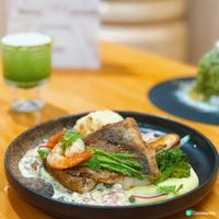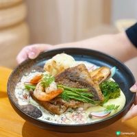 #frostie西環之旅#frostie甜品之旅 ✅ #eforegg 📍美食探險👉 @frostiewithfood - 🔥西環人氣咖啡店必試甜品🔥 今次經過,見到佢哋出咗新嘅special menu,感覺幾吸引,一於試下先!! 蟹籽煙三文魚忌廉扁意粉 $108 扁意粉表面鋪滿蟹籽,仲有整成玫瑰花形狀嘅煙三文魚放係中間,整體意粉偏乾身,口感彈牙 烤焗鱸魚伴薯菜 $148 另一樣主菜叫咗烤鱸魚,配搭薯蓉、蘿蔔、蘆筍等,用上意式香草汁,鱸魚好大份,薯蓉香滑,真係好滋味 醬漬火炙三文魚定食 $92 定食有白飯、味噌湯、中華沙律、野菜沙律。主角醬漬火炙三文魚有四塊,醬漬嘅關係令到三文魚好入味,帶有甜醬油香,送飯一流 抹茶栗子蒙布朗窩夫 $96 表面充滿綿密嘅栗子蓉,最頂仲有一個代表餐廳嘅雞蛋形狀奶蓋,味道香甜,加埋抹茶忌廉、紅豆蓉、糯米糍、入面煙韌嘅窩夫,以及側邊有唔少堅果碎,增添口感 雪の豆腐巴斯克芝士蛋糕 $62 呢款芝士蛋糕係期間限定款,表面有一層薄豆腐,入口芝士味濃郁,口感煙韌 開心果特調 $56 呢款特調用上開心果+鮮奶+豆腐,記得要攪勻先,香濃嘅開心果加上順滑嘅豆腐,隱約帶有鮮奶香氣,杯邊一圈仲有開心果碎點綴添 玫瑰花紅茶 ( 熱 ) $52 玄米茶 ( 熱 ) $22 另外都叫咗兩款熱飲,分別係玫瑰花紅茶同埋玄米茶。 玫瑰花紅茶份量足夠兩人飲用,入口先有玫瑰清香,最後有紅茶嘅香氣 - 分數:4/5 - 🏠 @eforeggcafe - #yum#yummy#delicious#tasty#相機食先#手機食先#hkfood#香港美食#美食#hkig#ighk#西環#西環美食#甜品