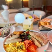 J.moon嘅裝潢超級靚!天花有波波燈飾,粉橙色調配上柔和嘅燈光,營造出溫馨舒適嘅氛圍。餐廳內設有梳化卡座,粉色調為主,配上小檯燈同藍色夜燈,超級有情調。餐廳開揚企理,座位之間有足夠空間,整體感覺輕鬆時尚,非常適合影靚相打卡,同時享受悠閒嘅brunch時光。 📍Avocado and Smoked Salmon on Sourdough 呢個牛油果煙三文魚多士一上枱,真係靚到我即刻影相先!😍 厚厚嘅牛油果片整齊排列,新鮮得嚟油潤有光澤,配上粉嫩嘅煙三文魚,放喺香脆嘅鄉村麵包上面,賣相一流!牛油果軟滑香濃,三文魚片薄而唔碎,入口即溶,仲帶有淡淡嘅煙燻香氣。整體搭配好和諧,清新又飽肚,絕對係健康早餐嘅首選!個湯匙咁厚嘅牛油果,真係慷慨到癲! 📍J.moon All Day Breakfast 一碟到位嘅All Day Breakfast,絕對係宿醉救星同懶人之選!🌞 碟頭有滑滑嘅炒蛋,色澤金黃誘人;兩條德國腸又香又多汁;煙三文魚同麵包都唔嬲;配埋啲沙律同蘑菇,色香味俱全!最正係個炒蛋,質地軟綿綿,啱啱好嘅濕潤度,蛋香濃郁,撒上少少香草提香,一啖接一啖停唔到口!搭配埋香脆多士,簡單又豐富,食完絕對精神爽利,元氣滿滿! 📍Aquarius & Andromeda 雞塊鮮魷圈小食 餐廳啲特調飲品賣相絕美,Aquarius清爽透薄嘅黃色配上白色泡沫,仲加咗食用花!Andromeda嘅鮮紅色靚到癡線!😲 雞塊炸得金黃香脆,咬落juicy爆汁,沾埋照燒蛋黃醬,甜中帶鹹好開胃!鮮魷圈酥脆彈牙,裡面嘅魷魚夠新鮮,唔會有股怪味,配埋蜜糖柚子醬,酸甜開胃!兩杯特調雞尾酒入口順滑,唔嗆喉,酒精味唔重,真係飲極唔知醉,小心啲呀!特別係Andromeda,莓果香氣撲鼻,帶微微甜味,飲落超舒服! J.moon絕對係一間值得推介嘅打卡brunch好去處!食物賣相靚之餘,味道都完全冇令人失望,個個dish都真材實料。餐廳環境舒適,服務又好,價錢雖然唔算平,但以食物質素同環境嚟講絕對物有所值! 🔹🔹🔹🔹🔹🔹🔹🔹🔹🔹 #J.moon 旺角西洋菜南街1A-1K號百寶利商業中心4樓10-11號舖 🔸🔸🔸🔸🔸🔸🔸🔸🔸🔸