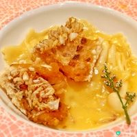 主菜方面,午市提供多達13款精選主菜,包括:炙燒芝士櫻花蝦海膽醬韓式年糕、泰式紅咖哩海鮮冷烏冬、輕煎日本帶子黑松露忌廉汁意大利飯、蒲燒鰻魚海膽忌廉汁扁意粉、陳醋蟹黃蟹肉牛油忌廉汁扁意粉、川式麻辣燒春雞、日式照燒汁慢煮牛面頰、巴馬臣芝士寶雲酥焗羊西冷、日式西京燒比目魚扒、香煎加拿大豬鞍配蜜糖芥末汁、西班牙燒乳豬配燒汁、澳洲穀飼100日肉眼牛扒 220g 配燒汁。另外更設有兒童餐,日式吉列炸蝦配鰹魚清湯烏冬,炸蝦食落香脆可口。最優惠的主餐僅需$88起+10%,設有最低消費每位$100。