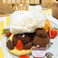 日本過江梳乎厘Flipper's首度聯乘英國「泰迪熊 Classic Teddy Bear」,推出兩款熊仔造型甜品🐻即刻試下啦❤️ 泰迪熊梳乎厘班戟($189) 可能店員都唔係成日整,花少少時間先認出熊仔😂😂熊熊混合咗佛手柑同奶茶慕絲製成,味道幾出幾特別👍🏻係少有嘅配搭~ 配料仲有特濃朱古力雪糕同雲朵棉花糖,雪糕質地偏硬,似泡芙餡嗰種🤨整體層次口感豐富。Pancake一如既往鬆軟好食😋 泰迪熊特飲($89) 上面嘅大粒實心朱古力熊仔超吸睛😍好Cute好可愛,仲有3款造型🙉🙊🙈飲品隱約飲到朱古力同奶茶元素,不過味道偏淡🙁 另外叫咗杯士多啤梨沙冰($50)莓味濃,正路發揮👍🏻 凡購買聯乘食品仲會送一個熊仔鎖匙扣~ 呢個聯乘做到5月14號咋!想一試嘅話記住快啲去啦😚😚 Flipper's 📍尖沙咀彌敦道100號The ONE 2樓 i.t orange forest內 營業時間:12pm - 9pm #Flippers#日本必食#日本過江龍#尖沙咀甜品#梳乎厘推介#攻略