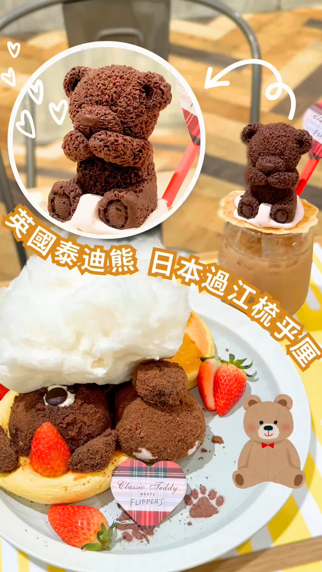 香港Flipper’s首度聯乘英國「泰迪熊 Classic Teddy Bear」,泰迪熊班戟及特飲系列於Flipper's 銅鑼灣希慎廣場、尖沙咀港威商場、九龍塘又一城店同步登場。除了香港Flipper’s外,大家在日本、台灣和新加圾Flipper's 都能食到「Traveling Teddy’s Fluffy Pancakes」的泰迪熊甜品系列呢~