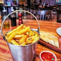 美式扒房 La Moo Moo' s Steak and Fries位於灣仔,浪漫有氣氛✨。牛扒由美國空運到港✈️,無經過任何雪藏,肉質自然有保證❤️。套餐包括沙律及牛油餐包,仲可以任食薯條添,大家一定要試試! 兩個Dinner sets $398 1️⃣蕃茄餐湯 + 特製百里香蒜蓉牛油餐包 飲得出係自己打,好新鮮!配埋個包無得輸,個好正呀,未食過咁好味嘅餐包!好香蒜蓉味!外脆內軟😋 2️⃣凱撒沙拉 Salad 菜好爽口,新鮮!佢醋汁都調得好好味!食主菜前食一食個沙律先,清一清! 3️⃣Prime Angus Flat Iron Steak 🉐 扒一黎好黑,長方形,外貌麻麻,一食好琳,肉汁豐富,唔靭!仲要配咗三款醬,有黑椒、洋蔥同阿根廷青醬,三款都好特別!另外個薯條🍟都好得,鍾意食依隻質感薯條! 4️⃣Texas BBQ Baby Back Pork Ribs 好大份,一個人應該食唔晒,有成9條骨,但個人覺得唔夠入味,好dry! 反而個薯蓉攞番d分,好重忌廉味,個side dish 仲好味過個ribs! #拍下珍貴時刻#靚住過聖誕#幾飽都要食埋甜品#我想去AIA嘉年華#聖誕驚喜