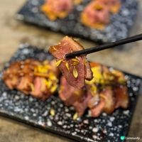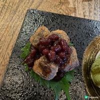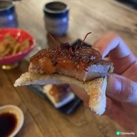 餐廳還提供其他日式下酒菜,例如炙燒A4鹿兒島黑毛和牛($238)、牛舌關東煮($68)及慢煮雞肝($68)。海鮮控則可以選擇每天款式不同的是日鮮魚($198起)及磯燒生蠔($68)等。蔬菜方面,必試茄子田樂($78),將原隻茄子開邊,再鋪上滿滿經自家調味的味噌於炭火上烤至軟熟,另外亦有香甜可口的粟米,以及充滿牛油香的蜜糖牛油新薯($28)等。想更添飽腹滋味,可以試試雞湯茶漬燒飯糰($48),口感香脆,同時帶濃濃雞湯味。