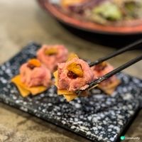 #frostie西營盤之旅#frostie日式之旅 ✅ #九鬼居酒屋 📍美食探險👉 @frostiewithfood - 🔥西營盤地道日式風味燒鳥 唔使飛日本都食到🔥 今次同朋友仔去到呢間日式居酒屋,主打時令特色沙律,定期轉款式,亦有自創獨有卷物及菜式。食客仲可以預定燒鳥稀有部位 : 雞提燈, 雞喉管, 雞腎元, 雞心元, 雞白子。餐廳有個清酒之旅 $298 , 多款清酒可供客人自選,可以邊食串燒邊飲返杯! 甜薯香梨沙律 $98 首先叫咗一份推介既甜薯香梨沙律,除咗黃色蕃薯仲有紫薯,仲有香梨同埋沙律菜,呢個沙律嘅特別之處係用咗酸乳酪取代普通嘅沙律醬,食落更加輕型健康 海膽吞拿魚他他 $138 叫咗一份海膽吞拿魚他他,一共有四件,底下用咗炸雲吞皮做底,上面嘅吞拿魚蓉再加一小塊海膽同埋魚子,味道鮮甜,充滿口感 陳皮梅子燒鴨胸 $138 另一個必食之選係陳皮梅子燒鴨胸,一整塊鴨胸切成薄片,上面仲加咗啲菊花瓣做點綴,鴨胸肉肥瘦適中,油脂明顯,正 九鬼三文魚盛 $198 叫咗一份三文魚盛,一共有六件,分別係魚子飯團、三文魚壽司同埋三文魚刺身 鹹香魚子極送飯,配上飯團正好 三文魚壽司充滿香甜美味,而三文魚刺身嘅油脂咁更加明顯,一大塊入口好滿足! 香芒三文魚卷 $128 鍾意食三文魚,另外亦都叫咗一份香芒三文魚卷,餡料被飯包喺中間,中間主要就有芒果粒三文魚粒,芒果嘅清甜令到成個飯卷食落更加清新 雞腿肉 $48@1 另外叫咗兩串雞腿肉串燒,廚師處理得啱啱好,雞腿肉外皮香脆,內裏肉質嫩滑多汁,趁熱食就最啱啦 - 分數:4/5 - 🏠 九鬼居酒屋 (西環) @kukiizakaya 西環西營盤高街80-86號麗賢閣地下A及B號舖 - #相機食先#手機食先#hkfood#香港美食#美食#hkig#ighk #西營盤#西營盤美食#日本菜#壽司#刺身#OMAKASE#日本#日式居酒屋#燒鳥#西營盤美食