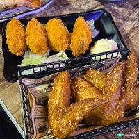 想找舒舒服服的堂食宵夜餐廳坐着吃串燒就可以考慮「夜貓。燒」。位於元朗朗屏站附近的夜貓。燒主打性價比高的川式燒烤串燒,而且營業至凌晨2時,超適合夜貓一族!推薦菜式有夜貓大雞脾爆蒜烤茄子蒜燒牛筒骨鹽燒三文魚鰭,雞脾灑滿惹味孜然粉燒至外皮香脆雞肉嫩滑,茄子亦舖滿超邪惡的蒜蓉辣椒,而牛筒骨則肥而不膩入口即溶,三文魚鰭也焦香滑溜。另設麻辣花甲粉麻辣燙等飽肚之選。