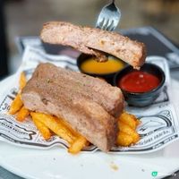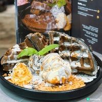 之前已經去過呢間餐廳度食飯,今次再次到訪,記得佢哋有生日畫碟服務,朋友話下次生日要來呢間餐廳度食飯 合桃南瓜雜菜沙律配柚子橙汁$108 沙律除咗有沙律菜,配料仲有南瓜片、合桃粒、番石榴籽,加上柚子橙汁醬,味道清爽 雙重芝士炸薯條 $88 粗切薯條表面灑上紅椒粉,並且加入芝士,側邊仲有乳酪同埋蕃茄醬,加番茄醬就係經典食法,薯條芝士食法就會比較奶香味重,加埋乳酪一齊食就會清爽啲 黑蒜醬烤豬排骨配薯條 $228 呢個豬排骨呢有三舊,底下就鋪咗啲粗身薯條,側邊分別有薯條嘅番茄醬同埋豬排骨嘅醬汁,本身以為用黑蒜豬排骨味道會比較濃,但調味比較輕盈,豬排骨肉質軟淋易切,加埋特製醬汁食落會冇咁油膩 黑芝麻醬窩夫配香草雪糕 $106 呢款黑芝麻窩夫個甜度啱啱好,雖然淋上咗黑芝麻醬但係呢唔會太膩,側邊仲有雲呢拿雪糕、黑芝麻忌廉同埋吉士醬可以點嚟食,實行一個甜品,多重享受 茉莉花茶鮮奶 $48 呢款叫咗熱飲,表面有一個幾靚嘅拉花,入口真係好明顯茉莉綠茶味道,但係又不失鮮奶嘅醇厚,咁樣嘅配搭真係唔錯 桂花菠蘿咖啡 $56 呢杯咖啡有好靚嘅漸層,真係好打卡。入口會先有咖啡既苦味,之後就會飲到桂花同埋菠蘿嘅香氣,係特別嘅飲品 最近餐廳推出嘅 Black Menu,以黑色作為主題,有興趣可以去試下 - 手打牛肉竹炭漢堡包 - 墨汁帶子意大利粉 - 瑪撒拉烤雞配黑芝麻醬及印席香米 - 黑芝麻忌廉梳乎厘班戟 - 黑芝麻窩夫配黑芝麻忌廉 - 黑芝麻拿鐵 (熱/凍) - 厚泡沫黑咖啡 🏠 Black Coffee #UCreator#打卡美食#好去處#chill#打卡
