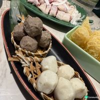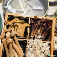 至於特色火鍋配料就有鮮珍山菌拼盤($78),可以吃到牛肝菌、鉛筆菇等市面少見的雲南直送菇類,也有帶有竹炭香氣的黑豆腐(中份$24;大份$32)、爽脆吸湯的竹笙蝦滑($92)、椰子水製作的椰子麵($28)、水培菜($38)、潮汕老字號雙拼丸($76)等。