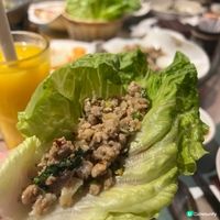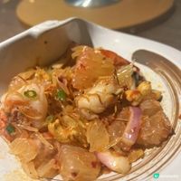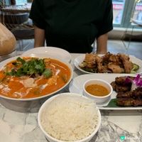 【🇹🇭新泰東南亞餐廳|尖沙咀開心抵食泰菜😋】 最享受一大班人食飯,可以點多啲款式,又可以每款食一啖,滿足晒我好奇又為食嘅性格! 食泰國菜最啱一班朋友去喇! 食咗咩? 😋鴨肉生菜包 傳統嘅豬肉生菜包就食得多,今次試鴨肉,味道更濃更惹味,同香草好夾! 😋小食拼盤 泰式春卷、魚餅、香葉包雞,我最欣賞個魚餅,裡面加入咗香草,食入口好香好特別。 😋椰青冬蔭功⭐️ 超鍾意呢個冬蔭功,用咗椰青水做湯,非常之清甜,除此之外仲有滑捋捋嘅椰青肉,同埋蝦、雜菇等,口感味道都幾特色,起碼其他泰國餐廳無。 😋椰青沙冰⭐️ 真椰青咁上,沙冰真材實料堆到滿瀉,入口青甜解渴,好抵飲。 😋咖喱炒蟹+配蒜蓉包、薄餅 咖喱蟹個汁先至係癥結所在,有蟹味之餘又唔太鹹,點熱辣辣嘅薄餅同埋蒜蓉包食都非常之夾,一不小心就會一件接一件停唔到手。 😋馬拉盞通菜 炒得幾夠鑊氣,我哋叫兩碟先夠喉。 😋青芒果沙律 將青芒果切絲而成,感覺清爽可口。 😋泰式酸魚 中式酸魚試好多,泰式我第一次食,湯或酸酸地,魚勁滑,都照樣有闊身冬粉,冬粉索晒啲魚湯,好正! 😋火焰火山骨 店員係上枱時點火,好有氣氛呀,勁開心的。火山骨繼續是泰味十足,男士們表示好喜歡。 😋串燒沙嗲豬牛雞 泰菜必點菜式,絕不失望呀! 我哋點足3碟,一放上枱就秒清!我最欣賞係牛串燒!記住點醬,會再好味啲! 😋柚子沙律 柚子份量好多,酸酸甜甜咁,我最鍾意佢加入咗啲幼幼嘅椰子薄脆,同埋魷魚,蝦,有少少辣,好開胃。 😋甜品拼盤 這裡嘅甜品拼盤幾好,廚師拍板感覺,樣樣有啲,啱晒唔同口味嘅朋友!大家明明叫晒好飽,但甜品當前又係全清!清得最快嘅係中間芒果糯米飯添! #尖沙咀美食#尖沙咀泰菜#泰國菜#新泰東南亞餐廳#好食#泰國美食#UCreator#Foodie#美食推介