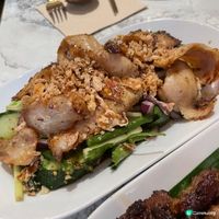 原隻燒春雞($148)除雞翼部分經已去骨,先以椰糖、芫茜頭等醃數小時,全是即叫即燒,肉質細嫩,香口多汁,配上以香茅、南薑及混入炒至焦香並打碎的糯米製成之Sambal Matah醬汁,風味十足。加上切碎乾蔥、檸檬葉、香茅及馬拉盞等如沙律一樣伴吃,充滿印尼、馬拉及新加坡的特色;泰式燒豬頸肉($108)採用同樣醃料,搭配由羅望子、魚露、泰國芫茜等打成的Nam Jim Jaew泰式辣醬,味道酸甜芳香。