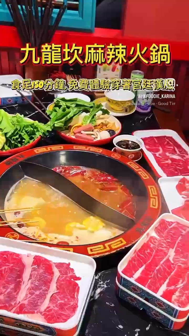 最近同朋友去咗「九龍坎麻辣火鍋」食放題,真係幾驚喜!揀咗佢哋嘅 $168 極上套餐,可以任食足 150分鐘,性價比好高。 套餐有齊 五款肉類任點,我特別鍾意美國肩胛肥牛同澳洲牛板腱,肉質唔錯,牛味濃郁。澳洲高鈣小肥羊配佢哋嘅 招牌四川麻辣牛油紅鍋真係好夾,麻辣湯底香濃但唔會太嗆喉,怕辣嘅朋友可以揀鴛鴦鍋,朋友唔食辣就㨂咗濃郁豬骨湯底,溫和清甜,襯蔬菜海鮮都好正。 除咗靚肉,仲有廿幾款火鍋配料任點,好似豬黃喉、鴨血、黑毛肚呢啲地道嘢都有。出面嘅自助區選擇亦豐富,蔬菜丸類、涼菜炸物、甚至當晚仲有麻辣小龍蝦任食。最開心係甜品區,可以自製冰粉解辣,仲有 Haagen-Dazs雪糕任食,飲品選擇都好多。 呢度仲有個大賣點,就係可以包房唱K同打麻雀!我哋冇包房,但見到環境走宮廷風,門口仲有古裝漢服提供打卡,幾有特色。如果一大班朋友嚟食放題,每人加$60就可以升級包房玩足2.5小時,聚會一流。 總括嚟講,$168 呢個價錢食到咁多靚肉同豐富配料,湯底正宗,仲有咁多自助選擇同玩樂設施,真係非常抵食。想再慳啲,記得經OpenRice折扣-68折 (6pm前或9:30pm後單點食品) / 78折 (單點食品) 絕對係同朋友聚餐嘅好選擇。 🔎九龍坎麻辣火鍋 (油麻地) 📍油麻地彌敦道469號新光商業大廈3樓 #foodie#food#foodphotography#delicious#hkfoodie#yummy#foodstagram#foodlover#foodblogger#火鍋 #852#放題#火鍋#香港美食#九龍美食#放題#UCreator