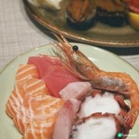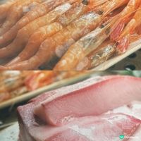 冰鎮海鮮及刺身:雪蟹腳、蜆、熟蝦、青口、三文魚、馬刀貝、吞拿魚、𩶘魚