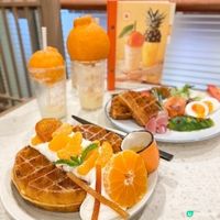 #冇比較冇傷害(圖二)🙂↔️ 成日見到人飲呢杯🍊嘢飲 覺得幾得意,原來佢仲有嘢食 呢日就嚟食個brunch 而且佢啲窩夫有鹹、有甜 總有一款啱你口味~ 🥘《 燒醬油黑毛豬白切肉紫蘇拌飯 💲138 》 豬肉嫩滑唔韌~啲飯應該有用韓式辣醬拌過,所以微辣~ 🥗《 Seaside Brunch 💲112 + 士多啤梨慕絲 💲38 》 有parma ham、開邊蛋、煙三文魚、牛油果煙肉碎、生菜同埋鹹味窩夫!窩夫入邊有火腿肉碎,鹹鹹地~ 🧇 《 清甜柑橘窩夫 💲98 》 加上新鮮橙肉同橙汁嘅窩夫好fresh一啲都唔膩~而且窩夫質地軟熟唔會太乾,係我杯茶~ 🍊《 濟洲柑橘乳酪 💲68 》 將成個鮮橙嘅汁肉加入乳酪,新鮮健康,味道清味天然~~ 👉🏻《 不只是冬天可以飲的忌廉朱古力 》 有想嗌呢杯試吓,不過呢日冇售~ 於是我哋嗌多杯🍊乳酪 🤣🤣不過橙嘅大細真係好講運氣🤣🤣 📍Terrace in seaside @terrace.in.seaside 九龍灣偉業街33號德福廣場1樓F11舖 #Terraceinseaside#coffee#creamsandwich#omurice#Cafe#打卡#Chill#度假