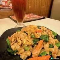 選舉日去左沙田新城市行街,行行下見到泰茶ChaTraMue Cafe有開餐廳堂食😳鍾意食重口味野嘅我地當然入左去食!估唔到個冬蔭公炒飯好有鑊氣👍🏻而個青咖哩炒金邊粉都高質!泰茶梳乎厘勁正😋Happy! #甜蜜聖誕滋味