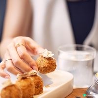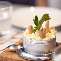 每位客人可自選兩款開胃前菜,首選俄羅斯土豆沙拉(另加$50),面層鋪滿醋浸三文魚魚籽,薯仔沙律混合了金槍魚蛋黃醬,而香脆可口的螃蟹包(另加$30)亦很吸引。至於招牌伊比利亞橡果火腿配蕃茄麵包,精選50個月伊比利亞橡果火腿,味道鹹香。素食者朋友可試試黑松露蘑菇酥炸丸子、寶石生菜沙拉或炸帕德龍甜青椒。