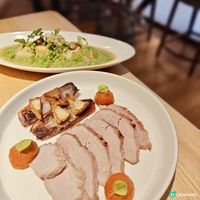 主菜方面,必試西班牙總廚私心推介的西班牙大紅蝦飯(兩位起用,另加每位$80),西班牙飯醬汁以紅蘿蔔、洋蔥、蕃茄等慢煮24小時至濃郁甜香,配以龍蝦湯、魷魚粒、魷魚膽汁等,還有爽彈大隻的西班牙大紅蝦。美國特級肉眼牛排(兩位起用,另加每位$80)同樣值得一試,肉味濃郁富油脂香,份量十足。另有香口惹味的西班牙辣肉腸配炸薯流心蛋、伊比利亞烤豬肉、烤春雞、阿拉斯加比目魚。