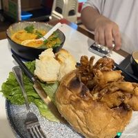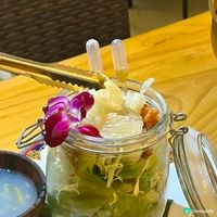 【送你免費「雙色芒果糯米飯」❣️😜】 ///// 觀塘工廈竟然有間環境闊落 出色泰菜餐廳!!! 座位附近有流水式七彩水燈 充滿泰國風情🇹🇭 同朋友最欣賞個湯同甜品 有酒店級水準😏 ‼️只要讚好並截圖(Cap screen)此帖文 用餐向餐廳店員提供 就獲得一客雙色芒果糯米飯 |白雪鮮蜆椰子雞湯 椰子雞湯充滿椰子奶香味道 非常鮮甜 湯放爐上保持暖笠笠溫度🔥蜆 青口海鮮配料好飽肚 |A.S.T 特色泰西甜品拼盤 🌟芒果糯米飯 招牌椰汁千層糕 西式甜點 擺盤靚到好似去嘆酒店下午茶🥹 千層糕好彈牙 糯米飯配芒果同椰汁提升斑斕味 椰子雪糕食到椰子粒 朱古力雪糕偏濃 符合小編口味🙂↔️芝士蛋糕有芝士鹹香 唔會太膩 |A.S.T招牌火山排骨(半份) 半份都足夠比3個人食🤣排骨要配大量芫荽同酸甜醬汁就惹味 軟腍度一般 稍嫌火候過咗 |馬拉盞炒泰皇椰青雞湯椰菜苗 椰菜苗炒得好爽口 搭配香濃馬拉盞少辣味道 好滿足♪(´ε` ) |金柚炸魷魚鬚沙律配韓式柚子醬 滴管唧柚子醬落沙律 玩味十足😬酥脆魷魚鬚 加上清新沙律菜好開胃 |富士之戀(蝶豆花梳打) |富士山下(蝶豆花奶蓋) 兩杯都用蝶豆花做原材料 梳打似有氣嘅鹹柑桔 奶蓋有奶香 味道甜甜的~ ——- 📍Add Some Thai Restaurant (觀塘) 觀塘開源道62號駱駝漆大廈第一座9樓D室 #泰菜#UCreator#打卡美食#美食推介#Foodie#觀塘美食