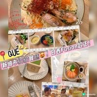 琴日同朋友隨意到新城市行街,經過呢一間📍QUE餐廳係一間日式和西式融合嘅Café,呢度可以一次滿足晒兩個願望,體驗日本和西式料理融合,實有啱食嘅嘢食。 餐廳裝飾以貓貓作主題,舒適用餐環境,好啱同朋友Gathering!。我哋兩個都有選擇困難,就嗌咗二人晚餐,包2款頭盤(沙律或粟米湯),主食 1.三文魚生丼,新鮮的三文魚又夠口感,仲搭配飛魚子,份量十足,口感豐富,仲有個小食,真係冇得頂。 除了丼飯,2.我哋嗌咗拖羅蓉壽司塔和三文魚壽司塔可,壽司外面用脆紫菜包住,入面飯粒粒分明,因採用咗日本珍珠米,仲有特色醬汁配搭,真係為味蕾帶來驚喜。 大蝦意粉嘅鮮甜的蝦肉與濃郁的白汁相得益彰。 仲要包2個甜品,我哋就升級咗,本身套餐只包雪糕甜筒。最後我哋兩款各加$12,係芒果拿破崙同抹茶Tiramisu盒子,拿破崙口感脆口,仲配搭生果,而Tiramisu上有插住抹茶酒,如果唔鍾意都可以掹出嚟。兩者都甜度適中,真係令人回味! 飲品方面,仲包括奶茶、咖啡、檸茶和檸水,如選擇其他飲料就要額外收費。或者可以做佢哋嘅限時任務,只要附上食評就可以送特色飲品,價值唔平又有特色。 非廣告🪧自費 覺得好純分享 有興趣嘅你,快D去QUE 新城市廣場一期嘗試一下! #UCreator#打卡美食#好去處#chill#隱世打卡點#全新景點#打卡#哈囉喂全園祭#中秋q彈時刻#家居必備神器#以油養膚締造水光肌#歎住靚景staycation#轉季護膚必備#請您食月餅#香港美食#相機食先#foodie#momentswithucreator#hkfoodie#啖啖舒暢透心涼