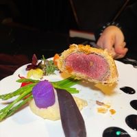 主菜(任選一款):威靈頓牛柳/慢煮西班牙黑毛豬鞍/乾式熟成紐西蘭法式羊仔架/法國黃油春雞 /乾式熟成紅東星斑/香煎鵝肝配日本A5和牛肉眼(+$198)