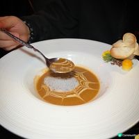 澳洲小龍蝦刺身、招牌鵝肝龍蝦蛋撻、炸法國康提芝士軟殼龍蝦沙律、法式傳統澳洲活龍蝦湯、煙燻原隻澳洲龍蝦、法國活濃龍蝦汁 配是日精選牛/羊/魚/豬或雞類、法式龍蝦帶子薏米飯、龍蝦柚子雪葩、米芝蓮飲品搭配(1杯)