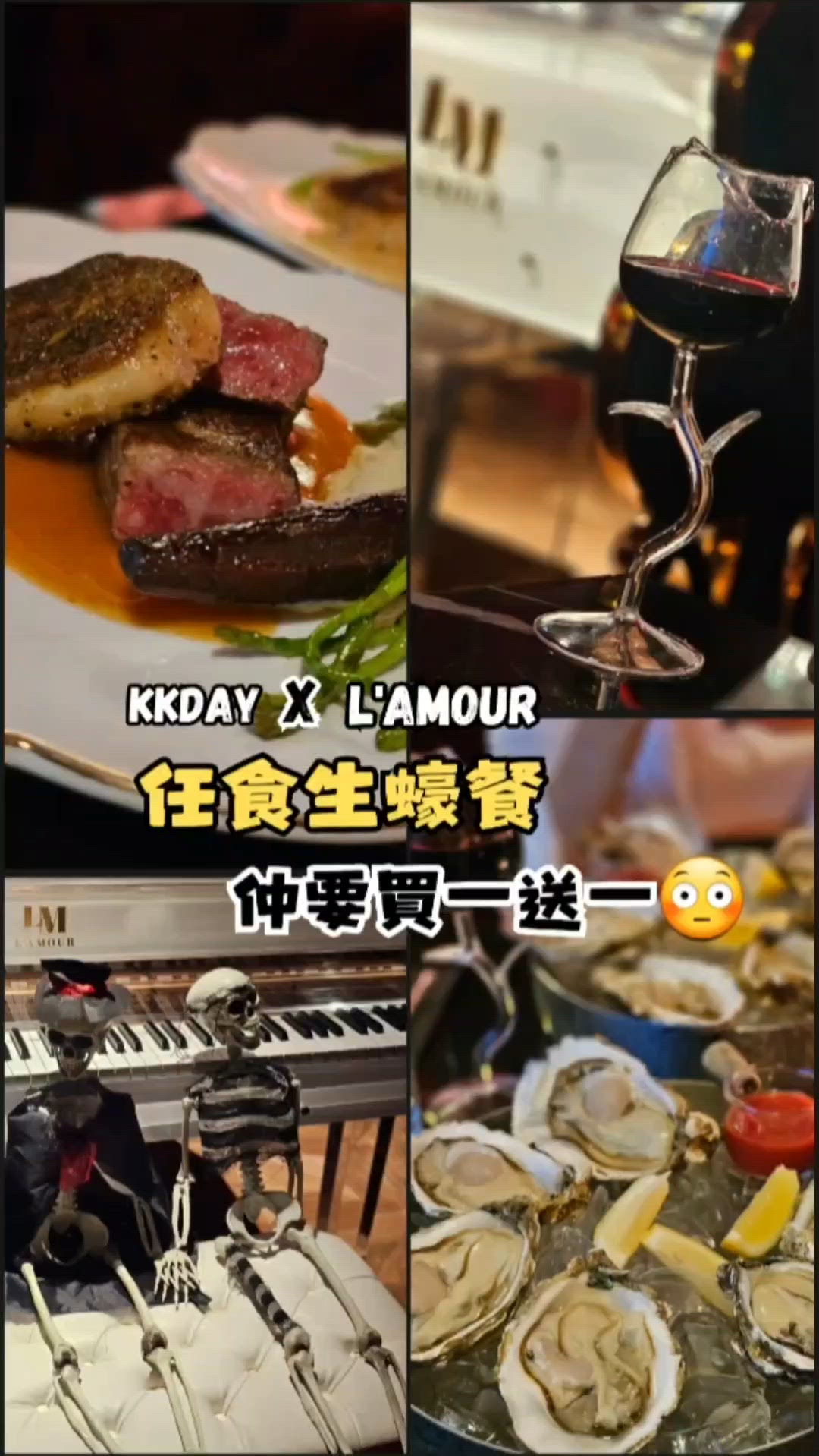 KKday 限量買一送一😵💫 5道菜+任食生蠔餐😳 Kkday x L'AMOUR獨家推出優惠 任食日本宫城生蠔 / 法國諾曼第生蠔 /澳洲哥芬灣生蠔 連5道菜 + 紅/白酒 ▪️是日精選沙律 ▪️是日餐湯 ▪️原隻澳洲龍蝦手工意粉 ▪️威靈頓牛柳/香煎鵝肝配日本A5和牛肉眼 +$198/法國黃油春雞/乾式熟成紐西蘭法式羊仔架/慢煮西班牙黑毛豬鞍/乾式熟紅東星斑 ▪️是日甜品 送白酒/紅酒一杯 ➖➖➖➖➖➖➖➖ L'AMOUR 中環蘭桂坊德己立街58-62號協興大廈地下A&B號舖 44143313 ➖➖➖➖➖➖➖➖ #中環#蘭桂坊#任食生蠔#任食#西餐#優惠#和牛#鵝肝#黑毛豬#kkday#hkfoodies#foodiehk#西餐廳 #UCreator #旅行美食 #打卡美食 #港島美食 #CAFE #Foodie #假期推介