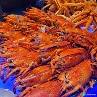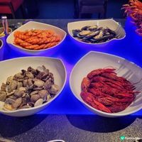海鮮及前菜:波士頓龍蝦、松葉蟹腳、法式牛脷凍、越式燒豬頸肉沙律、黑青口、龍蝦仔、青口、龍蝦鉗