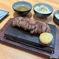 嘩!呢日5:00嚟到九龍灣呢間石燒牛專門店諗住食個Early dinner🍽️ 見到原來而家做緊優惠啊,每日有8個名額食$5牛扒同埋20個名額送珍寶元貝同埋雪糕🤩 因為呢個優惠由下午四點開始㗎,我哋5點鐘嚟到已經冇晒優惠牛扒啦🥩 好彩仲有送珍寶元貝同雪糕嘅quota咋。 1️⃣八幡平招牌牛扒 呢次係我哋第一次嚟食,試吓佢個招牌菜先🐮 餐廳會預先將牛肉煎至一至兩成熟,然後再放上熱辣辣嘅鐵板上面,我哋可以根據個人喜好,將牛扒切成一件件煎至我哋喜愛嘅生熟程度。呢一個招牌牛扒我哋嗌咗270g,份量都幾夠㗎,可以切啲同朋友分享🍴呢個招牌牛扒,肉味香濃,放喺鐵板上面燒真係好香噴噴。 2️⃣牛柳 另外嗌咗一款牛柳試吓,呢一個就嗌咗200g。牛柳相對上肉質比較軟腍,入口比較juicy同嫩滑🥩 店員仲建議我哋可以加啲蒜蓉放喺鐵板上面燒一下,再加落牛柳度食。果然,燒香咗嘅蒜蓉真係好正。撈飯或者配埋牛柳一齊食,真係唔錯🧄 3️⃣自助吧 除咗鐵板食物之外,出邊嘅自助吧係可以任食㗎。有和風沙律,沙律仲有兩款醬汁可以選擇,包括芝麻醬同埋柚子醋🥗 仲有洋蔥牛肉湯,入面嘅配料有好多,牛肉仲係軟腍腍㗎🍲 另外仲有珍珠米任添,加啲鰹魚紫菜飯素就更加好餸。🍚 4️⃣優惠 我哋今日捕捉到呢個20個名額送珍寶元貝同埋雪糕,感覺就更加抵食啦🤪 珍寶元貝係另外上嘅,同牛肉一樣,上碟時只係輕輕煎香咗,未係全熟㗎🐚 店員仲好細心見到我哋嘅石板唔夠熱,幫我哋換咗塊熱啲嘅鐵板再處理元貝。元貝嘅味道都幾鮮,我哋就將佢切咗一半再煎,容易啲熟吖嘛。雪糕方面可以一人揀一隻口味,我哋揀咗泰式奶茶同埋豆腐雪糕🍦 5️⃣飲品 落單嘅時候,我哋仲嗌咗一人一罐飲品🥤不過如果唔想飲呢啲有糖嘅汽水,餐廳自助吧都有食水供應㗎。 限時優惠做到9月7日,大家記得要mark實時間去歎呢個激抵優惠啦🤩 五星評分:🌕🌕🌕🌕🌗 📍八幡平石燒牛扒專門店 地址:九龍灣常悅道21號Eastmark 2樓5-6號舖 #chubbybowtie#foodie#hkfoodie#hkig#hkfood#香港美食#foodstagram#抵食推介#九龍灣美食#九龍灣#九龍灣餐廳#kowloonbay#kowloonbayfood#八幡平#石燒牛扒#steak#牛柳#元貝#scallop#牛扒#超抵優惠#UCreator#九龍美食