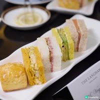 鹹點:加冕雞杏仁黃脯葡萄乾三文治、雞蛋沙律車打芝士蛋黃醬香草三文治、三文魚酸忌廉檸檬刁草三文治、吞拿魚醬小牛肉酸豆鯷魚火箭菜三文治